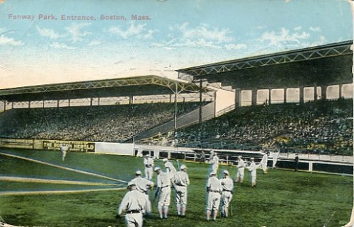 Postcard Israelson & Co. Fenway Park Entrance Boston USA 1915 colourill. Legendary Home of the Boston Red Sox. posted/postgånget.