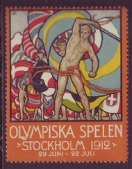 Brevmärke/label 4,5 x 6 cm Färg/colour without rubb/utan gummering Text: Olympiska Spelen Stockholm 1912. Artis: Olle Hjortzberg, Svensk/swedish upplaga 554600. FRI FRAKT-FREE DELIVERY!