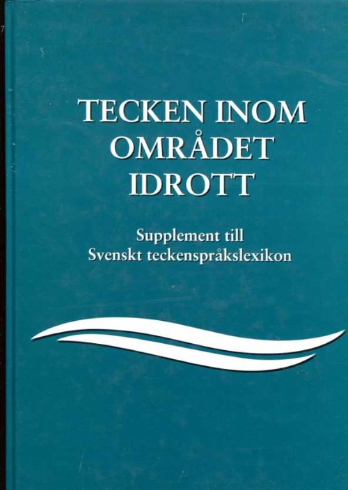 Förlagsband Sveriges dövas riksförbundet 2003 rikt illustrerad. Ett supplement till Svenskt Teckenspråkslexikon. Lexikonet är i bokform med ca 400 sidor och innehåller 1100 tecken inom 90 olika idrottsgrenar.