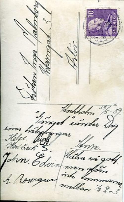 Vykort från Stockholm före matchen mot AIK 14/5 1939. Hälsningar från Sture (Mårtensson),Helge (Bengtsson), Karl-Erik (Sandberg) Göte Rosengren samt John Edvin.. se större bild