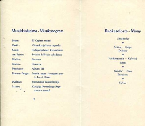 Bankett Landskamp Finland-Sverige 19/9 1948