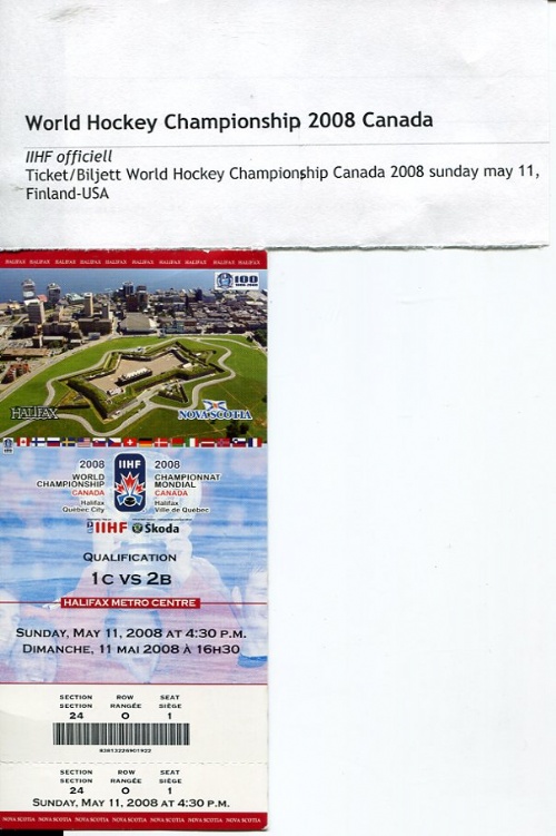 Ticket/Biljett World Hockey Championship Canada 2008 sunday may 11, Finland-USA FRI FRAKT-FREE DELIVERY!