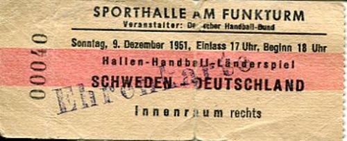 Ticket Handball Schweden-Deutschland sonntag 9 dezember 1951 Länderspiele. FRI FRAKT-FREE DELIVERY!