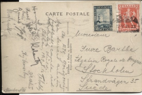 Vykort sv/v. athenes stade vue partielle de la piste/Athenes skede delvis utsikt över banan. Vikmärke, lite skadat. FRI FRAKT-FREE DELIVERY!