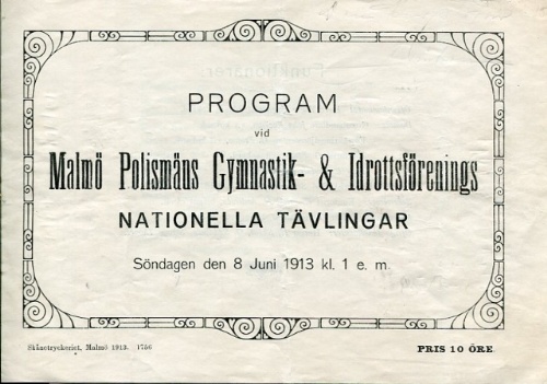 Klammerhäftad Program vid Malmö Polismäns Gymnastik & Idrottsförening Nationella Tävlingar söndagen 8 juni 1913. rostig klammerhäftad. FRI FRAKT-FREE DELIVERY!