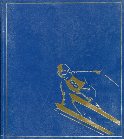 Mörkblått konstläderband med guldtryck sport&spel / Svenska skidförbundet 1969 rikt illustrerad med prislista Vasaloppet 1969 nr.101-7083