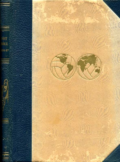 Halvfranskt band med övre guldsnitt Svenska Sportförlaget 1957 illustrerad. Första årgången. solmärkt baksida