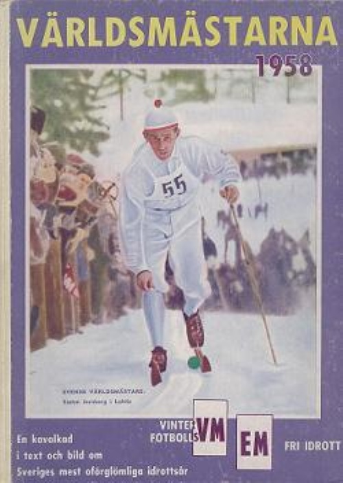 Ryggklotband Åhlén & Åkerlunds Förlag 1958. [6],44,[2],64,48 sid. illustrerad. En kavalkad i text och bild om Sveriges mest oförglämliga idrottsår. Innehåller Vinter VM, Fotbolls VM och EM i fridrott. lite nött omslag
