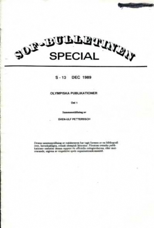 Klammerhäfte SOF-bulletinen no.13. Sammanställning av utgiven OS- litteratur i svenska ägor. Olympiska publikationer del. 1. namnad. FRI FRAKT-FREE DELIVERY!