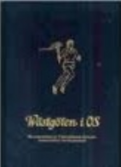 Dekrorativ konstläderband Wästgötaidrottssällskap 1990 illustrerad . Om västgötar som deltagit i olympiska spel.