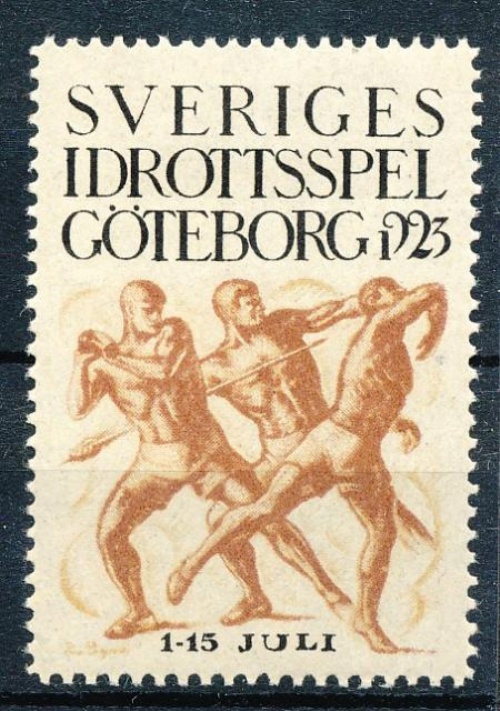Brevmärke Sveriges Idrottsspel Göteborg 1923 1-15 juli. Med gummering och fasthållare. FRI FRAKT-FREE DELIVERY!