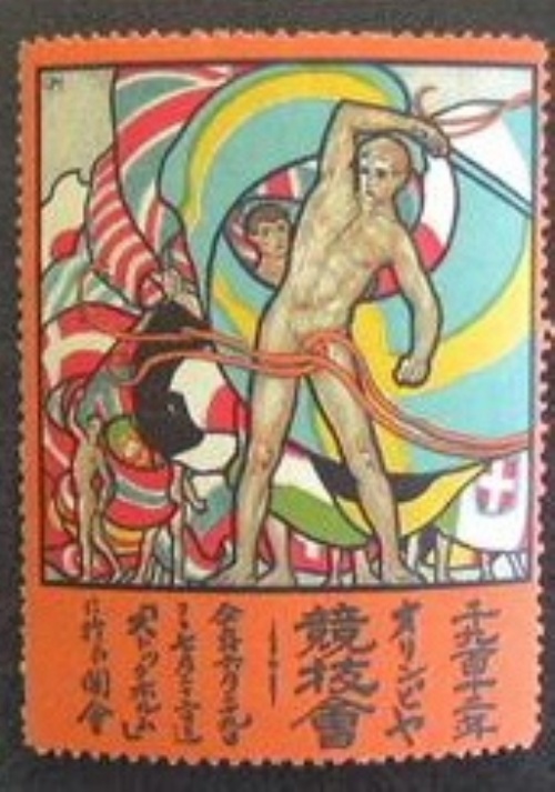 Brevmärke/Vignette Hjortzberg Olympic publicity poster stamps with texts in different languages inc. the rare Japanese, Chinese (17.300) & Arabic versions issued in very limited numbers. Russia, Finland,Japan ,Greek HRY (Hungaria Skada hörn)