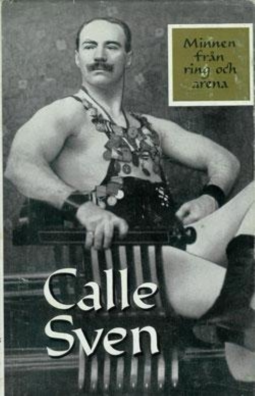 Ryggklotband Tiden 1957 illustrerad. Calle Sven kraftkarl i sekles början från kraftsport till tyngdlyftning. Carl Svensson (1879-1956), svensk tyngdlyftare, brottare och cirkusartist.