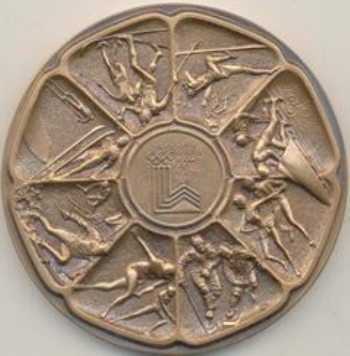 Deltagarmedalj/Participants bronze 1980 Maco Bronze Struck by Sporrong diam. 76 mm. XIII Olympic Wintergames Lake Placid 1980. (Stylized composite of winter events)Stiliserad komposit av vintern händelser från bob sledding till skidåkning, skridskoåkning, ishockey. Medallic Art Company Lake Placid XIII Olympic Games 1980 Medal Marcel Jovine