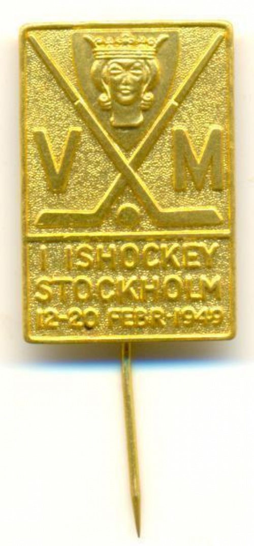 Pins World Hockey Championship Stockholm 1949. World Hockey Championship 1949 Stockholm. Text: VM i Ishockey Stockholm 12-20 febr. 1949. Sverige arrangerade VM i ishockey för första gången. metall. FRI FRAKT-FREE DELIVERY!