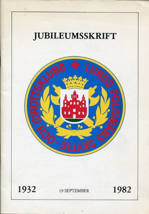 Häftad Lund LPSI 1982 illustrerad. Lunds polismäns skytte- och idrottsklubb jubileumsskrift 19 september, 1932-1982