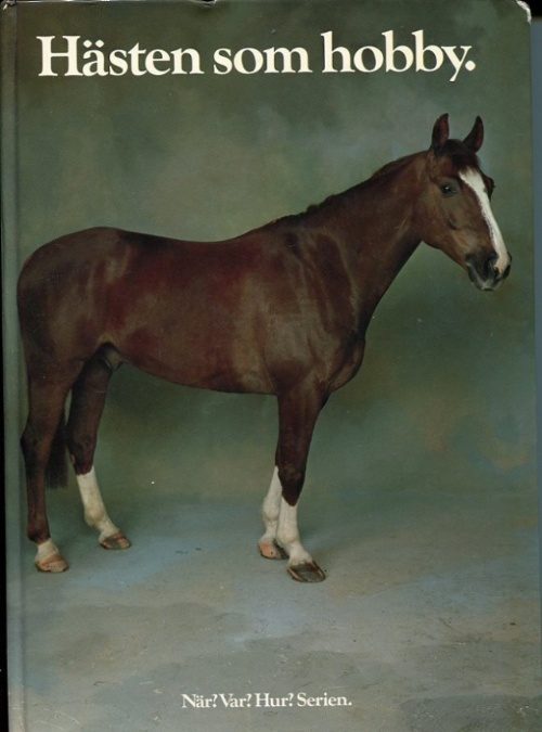 Kartonnageband Forum 1983 illustrerad När-var-hur-serien 6:e omarbetade och utökade upplagan. Den fullständiga handboken om hästar, ridning och körning. Inklistrade hästbokmärken försättsbladet, ett bokhörn lite nött