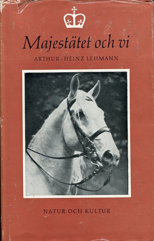 Ryggklotband/skyddsomslag N&K 1956 illustrerad. Majestätet och vi. Om två människor och en häst