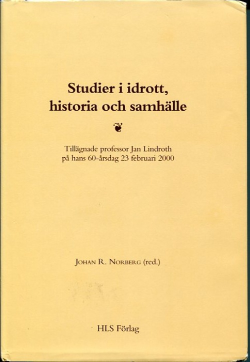 Förlagsband/skyddsomslag HLS förlag 2000. Studier i idrott, historia och samhälle Tillägnade profesor Jan Lindroth på hans 60-årsdag 23 februari 2000.