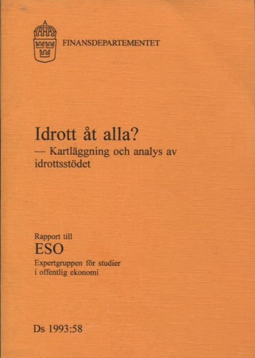 Häftad finansdepartementet 1993 tab. Kartläggning och analys av idrottsstödet. Rapport till Expertgruppen för studier i offentlig ekonomi