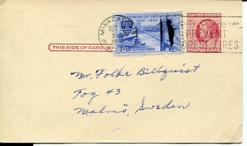 Brevkort inför lokalval USA 1950-tal, från County commissioner S. Earl Ainsworth was called -Mr County government for 22 years in Hemepin St. Louis Park USA. Proviniens mottagare Skådespelaren Folke Billqvist (1933-1993). se större bild.