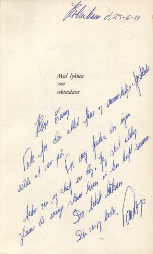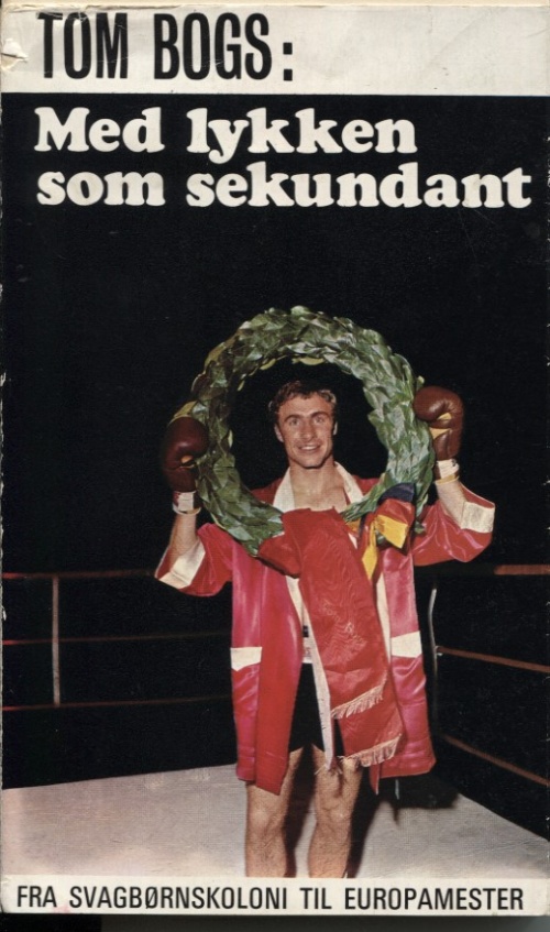 Heftet med orig. omslag og smudsomslag. 1958 Illustreret med fotos i s/h.. Fra svagbørnskoloni til europamester. Dedikation från Tom Bogs