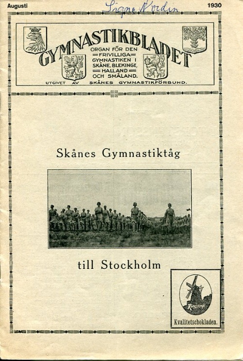 Klammerhäftad organ för den frivilliga gymnastiken i Skåne, Blekinge, Halland och Småland no. 8/1930 illustrerad. Skånes gymnastiktåg till Stockholm. namnad framsida. FRI FRAKT-FREE DELIVERY!